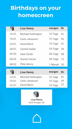 With the widgets of this birthday app on your home screen, you have every birthday, anniversary and other occasions in sight. You have a good gift idea? Tap on the widget and you’ll be right within the app to capture a gift idea or wish happy birthday. The countdown always shows you the next important days right on your homescreen. Your birthday diary is there, even without opening the birthdays app.