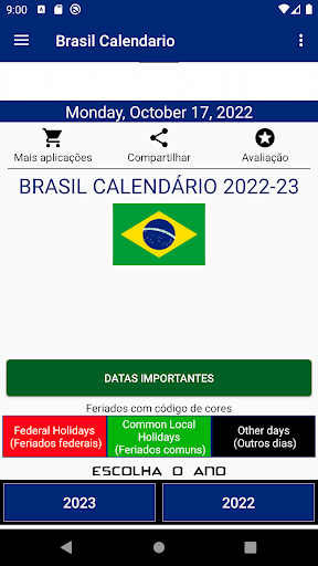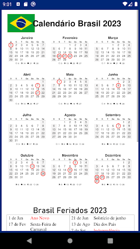 O aplicativo Brasil Calendário está disponível para o ano de 2023 com Feriados, 2023 e 2023