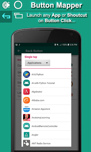 - Atribuir ação de volta a qualquer botão, ou seja, volume, volume para baixo ou botão recente