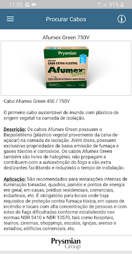 Desenvolvido pelo fabricante líder mundial de cabos Prysmian Group, o Cable App é uma ferramenta profissional fácil de usar que ajuda a selecionar o melhor tipo de solução de cabeamento, dependendo do tipo de projeto e instalação. Ele calcula a seção ideal, fornecendo conselhos úteis para economia de dinheiro e CO2. Enriquecido por fotos e documentação técnica, oferece recursos adicionais, como link direto para catálogos de produtos, a possibilidade de salvar, imprimir ou compartilhar resultados com outras pessoas com facilidade. Permimte o acesso a notícias e vídeos recém-lançados pela companhia relacionados ao mundo de cabos, eletricistas, instaladores, profissionai e consultores do ramo e engenheiros. Ele oferece a pesquisa tanto por atributos básicos de cabos quanto por parâmetros profissionais do sistema.