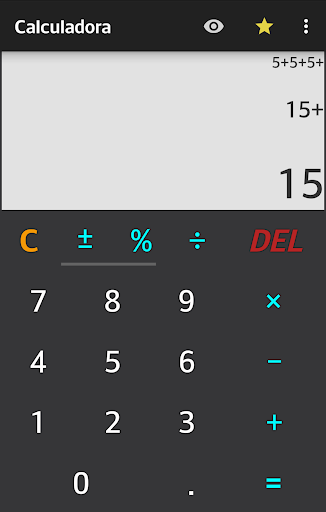 • Outros Operadores: %, ±, x², √ e muitos mais para ser adicionado em próximas versões. Para acessar todos eles, simplesmente rolar da direita para a esquerda ou vice-versa nestes botões. Ou apenas mantenha% e arraste para a esquerda.