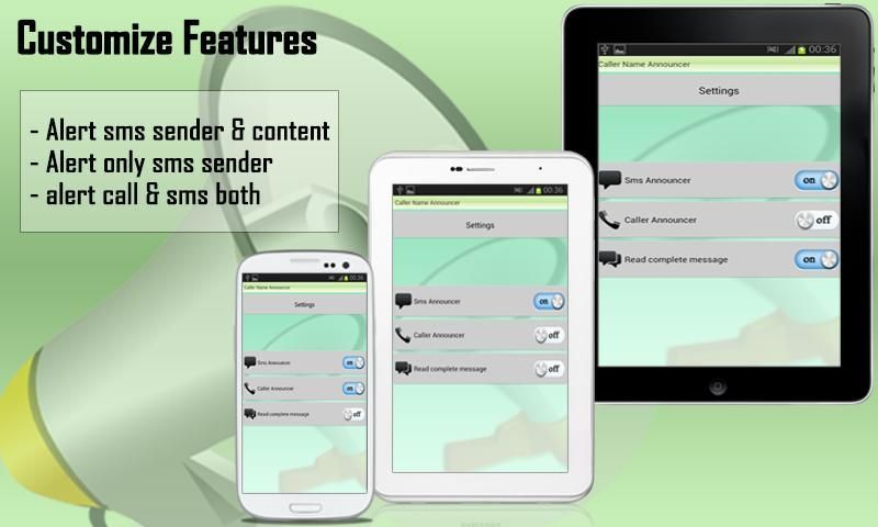 Caller Name Announcer uses the built-in Android text-to-speech engine to speaks the Incoming Caller Name or SMS Sender Name and contents of the SMS. Caller Name Announcer will not work if your smart phone does not have text-to-speech library but this is not a problem you can easily download it from Google play store-Enjoy this app.