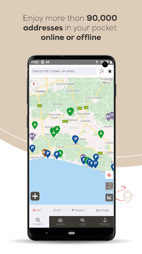 BAIXE as regiões no modo offline e navegue sem uma conexão com a Internet durante a sua viagem em autocaravana.