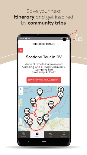 PROCURE um acampamento, uma área de serviço em torno de sua localização ou no seu destino e encontre a parada para estacionar seu motorhome durante uma viagem.