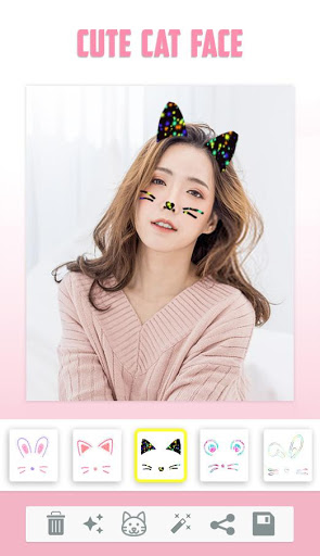 Se você estava procurando por um aplicativo que lhe dá ouvidos de gato, você está no lugar certo! Baixe este aplicativo "Cat Face Camera Photo Editor" e você não terá apenas adesivos "gato", mas também "cara de coelho", orelhas de cachorro, orelhas de gato e muitos outros adesivos de kawaii para fotos. Use esses "face adesivos" e "filtros para selfies" como seu fabricante de câmeras de rosto de gato e post fotos fofas on-line diretamente deste aplicativo Kawai. Este é o mais recente editor de fotos para meninas projetadas para adicionar orelhas de gato à foto e dar-lhe o olhar mais fofo no mundo. Escolha seus adesivos de gato e adicione o máximo que quiser usando sua nova câmera de rosto de gato.
