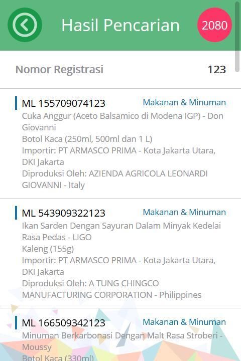 Data Produk Obat dan Makanan Teregistrasi dapat dicari berdasarkan kategori berikut:
