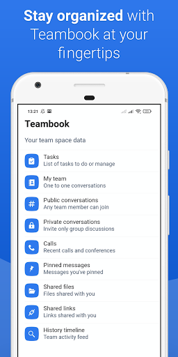 - Teambook Hub: Um único local para organizar suas tarefas, conversas, Mensagens fixadas, links e conteúdo