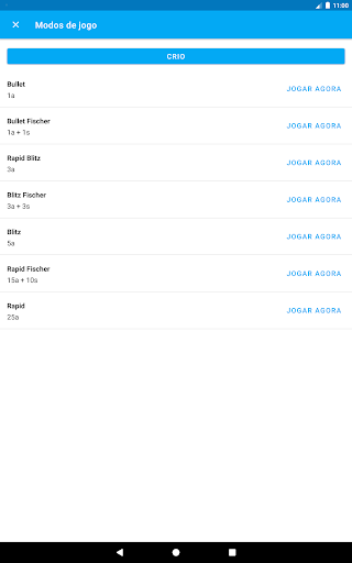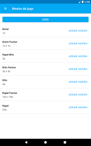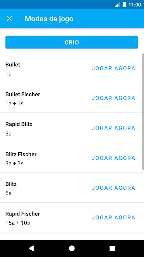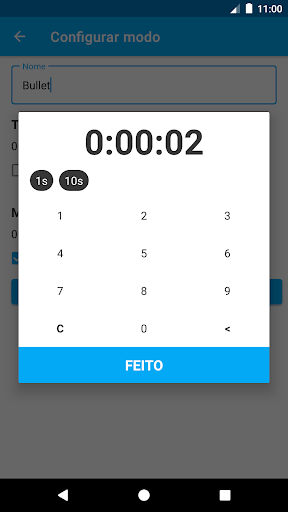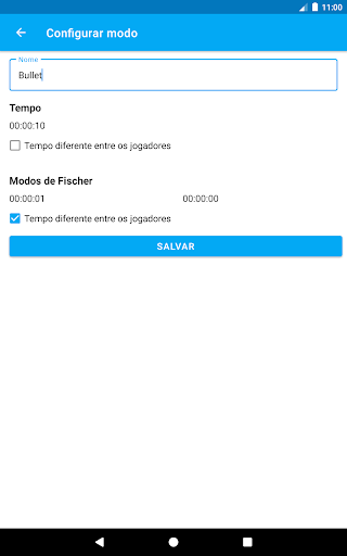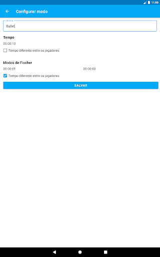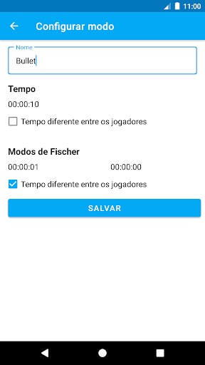Os seguintes tempos são pré-instalados: 1m, 1m 1s, 3m, 3m 3s, 5m, 15m 10s e 25m. Você pode adicionar rapidamente seus próprios modos de tempo. Tempos diferentes por jogador também são suportados.