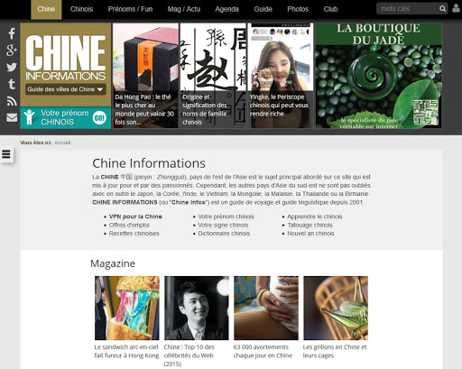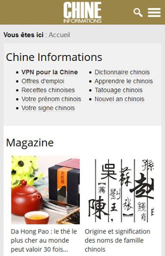 consulte todo o site em smartphone ou tablet diretamente com um único clique.Ideal para ler notícias em tempo real na China ou melhorar seus chineses graças ao espaço dedicado ao mandarim que contém entre outras coisas Um dicionário chinês, um áudio de áudio, gramática e cartas de vocabulário.
