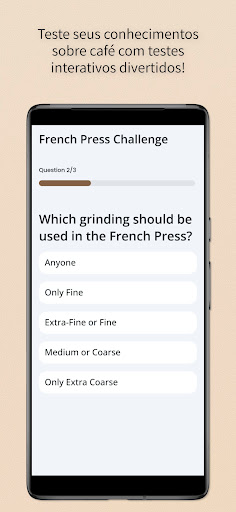 Para mentes curiosas sedentas por mais conhecimento, o Coffeely apresenta desafios cativantes sobre café. Teste seus conhecimentos com questionários divertidos e envolventes que abordam desde a origem do café até técnicas avançadas de preparo. Ganhe recompensas, desbloqueie conquistas e expanda sua habilidade com o café como nunca antes!