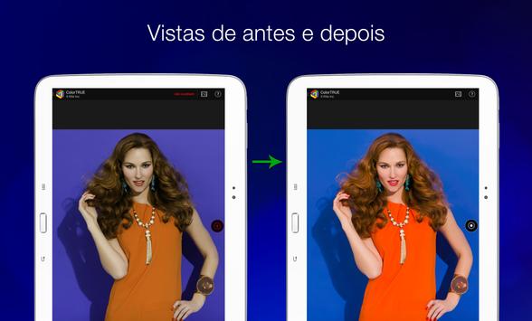 Para os perfeccionistas das cores, profissionais, amadores, entre outros, o ColorTRUE fornece uma exatidão cromática sem rival na tela do seu dispositivo móvel e é incrivelmente fácil e rápido de usar. Assim que você coloca um dispositivo de calibração X-Rite compatível sobre a sua tela, o ColorTRUE começa a sua verdadeira mágica fornecendo um perfil personalizado em minutos! Além disso, o ColorTRUE vem equipado com um incrível visualizador de imagens para que você possa mostrar suas fotos com confiança, sabendo que as cores delas estarão exatas.