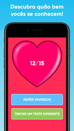 O que você está esperando? Este é um ótimo jogo de relacionamento entre casais para adultos! Pegue seu parceiro our melhor amigo e faça o Teste de Casais hoje mesmo para começar a aprender mais sobre eles. Prove que você é um Casal Feliz!
