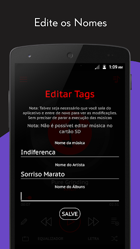 Compartilhe músicas com seus amigos com Crimson, O melhor reprodutor de músicas para Android. O Procurador de Letras, O Equalizador Inteligente e o Editor de Títulos fazem com que um grande valor em sua experiência seja adicionado!