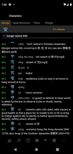Analisar e procurar um texto completo pode ser copiado com acesso imediato a palavras desconhecidas.A pesquisa mostra o significado, palavras relacionadas e detalhes de personagem com várias ligações cruzadas.Os usuários podem personalizar itens mostrados/ocultos para manter a apresentação simples e clara.