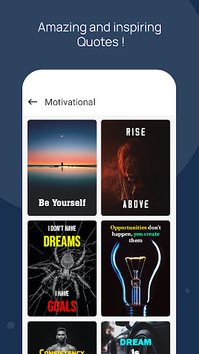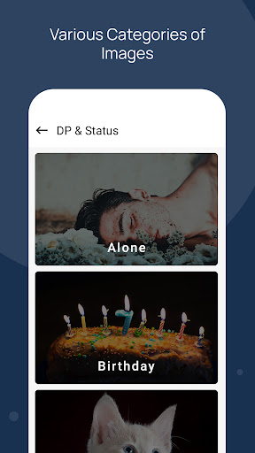 Trazemos a você o perfil de exibição mais popular para toda a sua conta de rede social.Há uma nova tendência de manter as citações famosas como status de DP.Temos imagens diferenciadas em categorias para que você possa encontrar rapidamente as imagens.Você pode definir uma imagem como um papel de parede ou DP diretamente do aplicativo.Além disso, você pode compartilhar as imagens com seus amigos do próprio aplicativo.