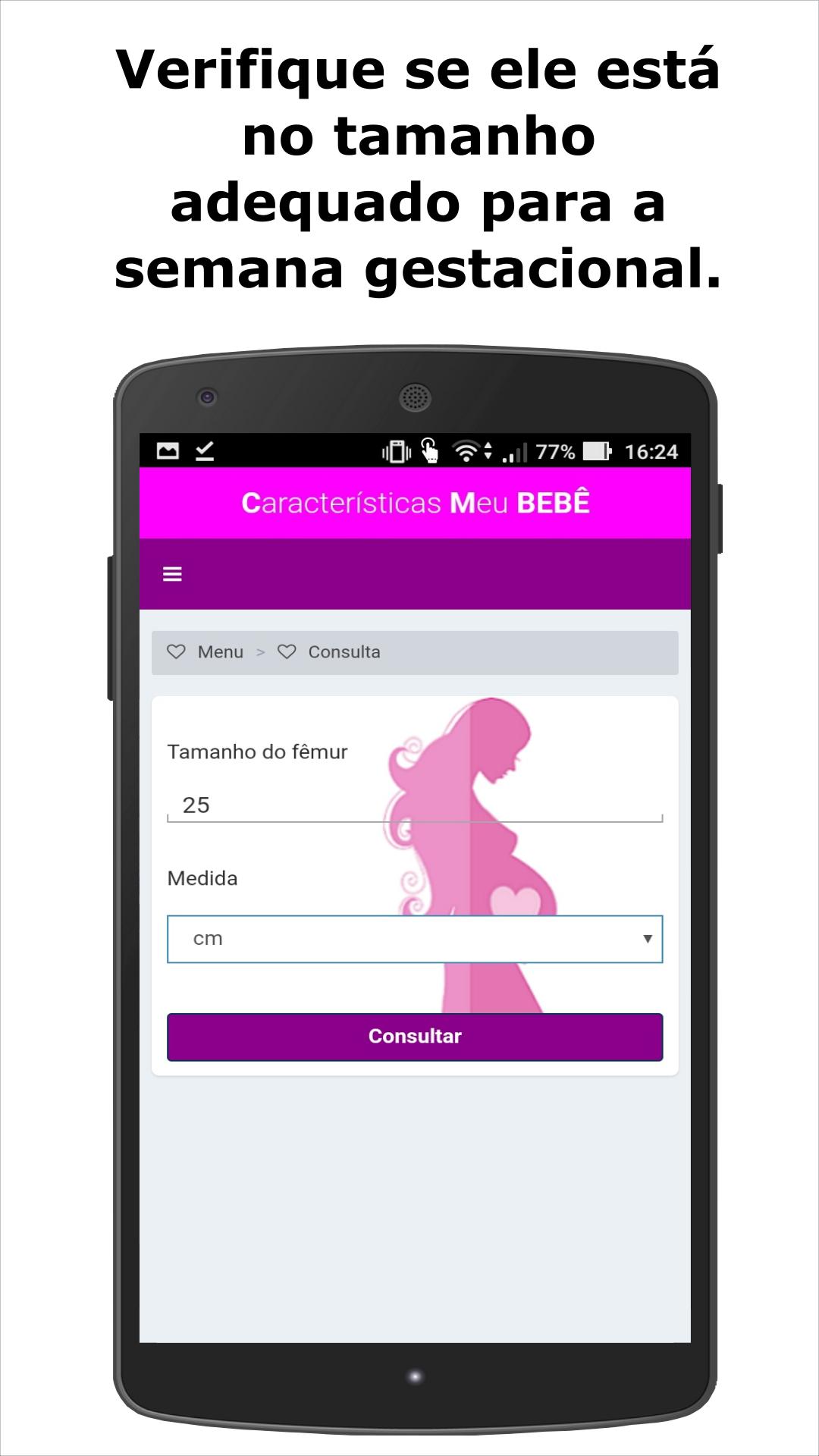 - Nesta opção você poderá calcular qual o tamanho atual do feto, podendo assim verificar se a sua gestação está dentro dos parâmetros normais para a semana gestacional.