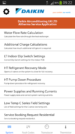 O aplicativo de serviço da Daikin foi lançado pela Daikin Arconditioning Reino Unido para apoiar engenheiros de serviço na indústria de ar condicionado que trabalha com equipamentos de Daikin.