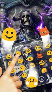 Vai surpreendê-lo. Morte do crânio do rei da teia de aranha escuro, dreariful e cheio de luz de antiguidade extravagante e rica cor única, eu acredito que você vai gostar deste tema do teclado do crânio escuro, deixe-o personalizar o seu telefone móvel Android! Deixe-o guiá-lo na tendência da arte! Este é um tema muito legal do tema do Rei Caveira de um soft escuro compatível com Samsung