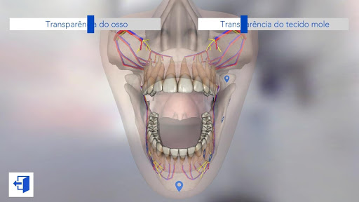 O Dental Simulator pode ser baixado de graça e o estudante terá uma amostra do modelo 3D utilizado nos procedimentos, experimentando o modelo no Modo Visualização, onde o usuário poderá visualizar o modelo utilizado e também, através do modo transparência, visualizar o crânio do modelo.