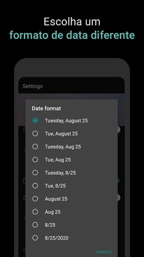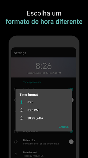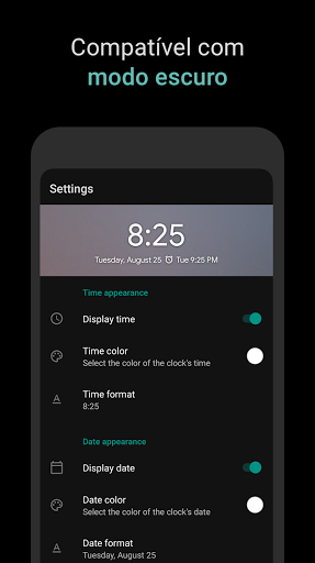· Escolha entre milhões de cores para a hora e a data com um seletor de cores RGB
