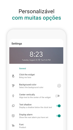 O 'Widget de Relógio Digital' é um widget de data e hora digital para tela inicial do Android. Parece com a tela inicial de desbloqueio do iPhone.