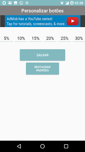 Quer definir seu próprio percentual além dos já pré-definidos? Sem problemas! Num toque você pode definir seu próprio percentual. Mas você usa com frequência este mesmo percentual? Então apenas insira esse valor num dos botões, que são personalizáveis!