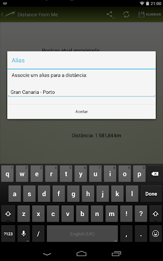 Distance From Me é uma ferramenta intuitiva para calcular distâncias em linha reta entre a posição atual e lugares especificados (em metros ou quilômetros). Você pode especificar o local manualmente, ou relaxar na pesquisa (busca por voz está incluído) e compartilhar sua pesquisa com os amigos.