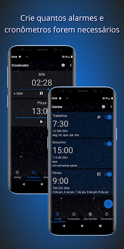 Sem limitação. Crie quantos alarmes e cronômetros forem necessários.