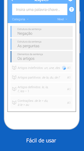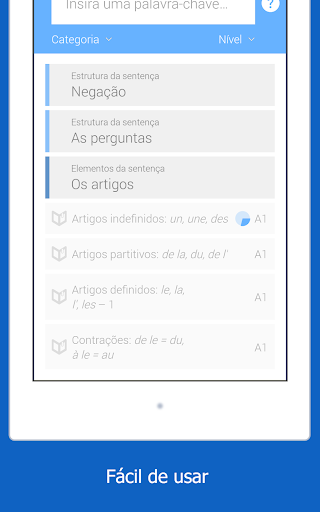 Dr French é o aplicativo definitivo para aprender e revisar a gramática do francês. Neste aplicativo intuitivo e fácil de usar, o conteúdo está organizado por tópico e nível. Você encontrará lições simples e dirertas com exemplos traduzidos, assim como exercícios para praticar o que aprendeu e melhorar suas habilidaddes.