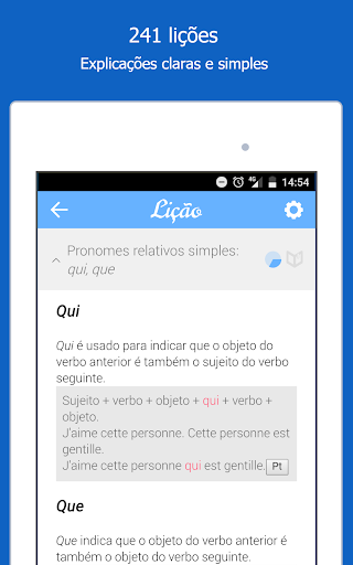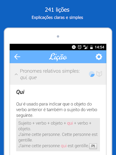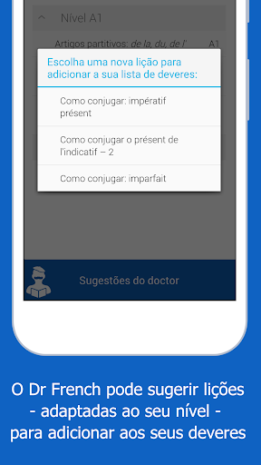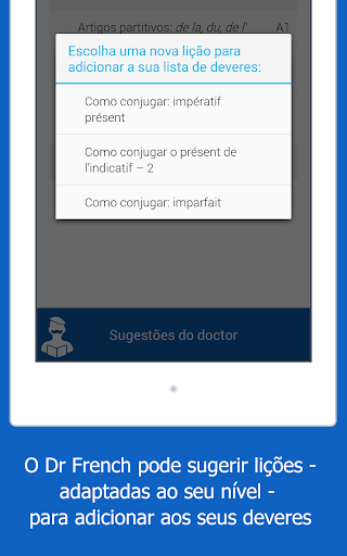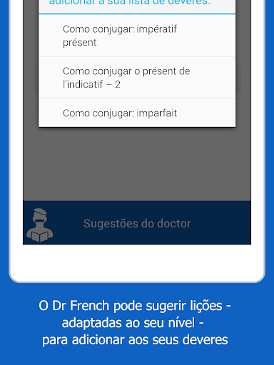 O Dr French se aprofunda na gramática da língua francesa, e não no vocabulário. Existem muitos outros aplicativos disponíveis para te ajudar a aprender e aplicar o vocabulário da língua!