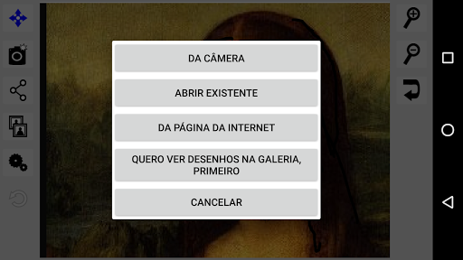 Tirar foto ou selecionar uma imagem. Você pode capturar e desenhar a si mesmo, seu amigo ou o seu amado animal de estimação.