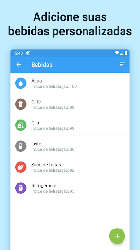 Chá, café, suco, leite, etc. Acompanhe a água ou suas bebidas favoritas e seus índices de hidratação para calcular corretamente a saturação da água.