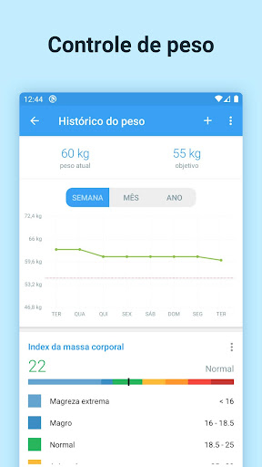 Acompanhe seu peso e índice de massa corporal. Ótima ferramenta para perder peso.