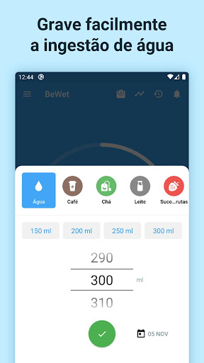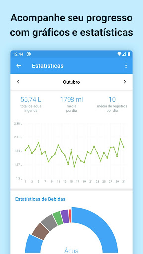 Acompanhe quantidade de água e bebidas que você bebe por semana, um mês ou até um ano.