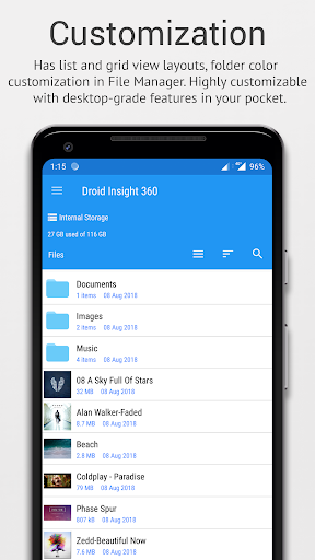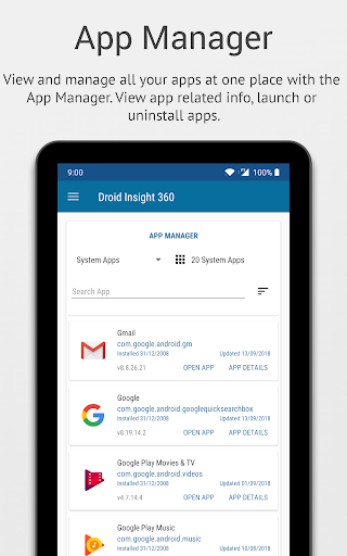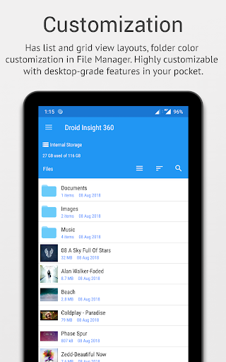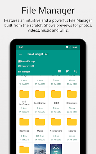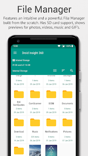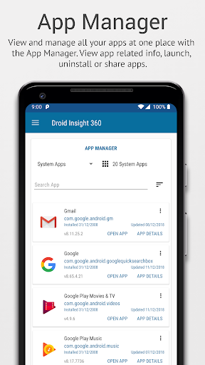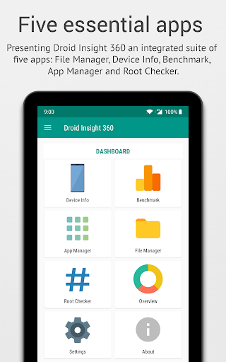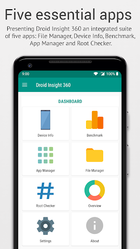 O Droid Insight 360 é uma suíte integrada e poderosa com cinco aplicativos essenciais embutidos em um. Com Droid Insight 360, pretendemos reduzir a desordem de ter aplicativos redundantes e separados. Gerenciador de arquivos 📁, gerenciador de aplicativos 🔣, info do dispositivo📱, benchmark 📊, verificador raiz # ️⃣) - Cinco aplicativos em uma suíte integrada, tudo em um tamanho incrivelmente pequeno de 5 MB.