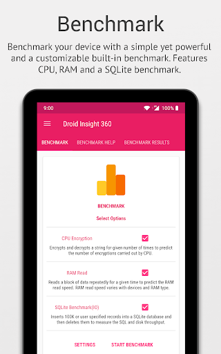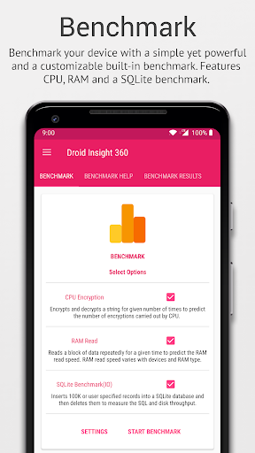 ▪ ️️ Benchmark Seu dispositivo com um benchmark simples, mas poderoso e personalizável.