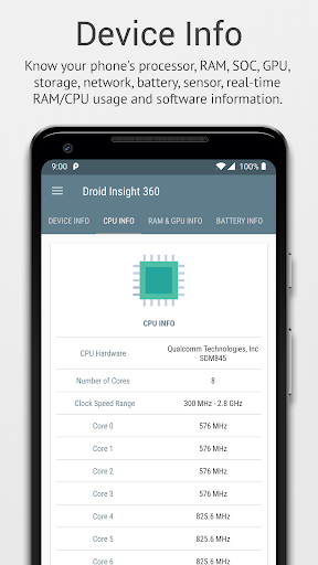 ▪ Conheça o processador do seu telefone (CPU), RAM, SOC, GPU, Armazenamento, Cartão SD, Rede, Bateria, Sensor, Real-Time Ram / Uso da CPU e informações S / W.