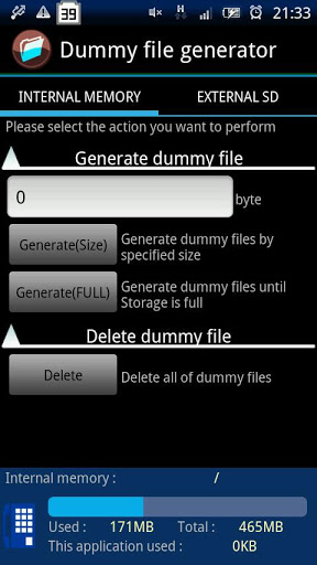 By using this software, you can create a state (memory full) status of the lack of storage capacity of the terminal.