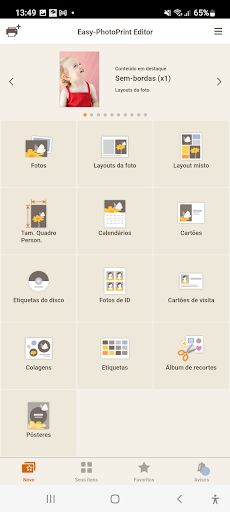 Dê asas à criatividade com o Easy-PhotoPrint Editor, uma aplicação de impressão de fotografias fácil de utilizar. Pode utilizar modelos ou um editor de esquema livre para criar vários tipos de conteúdos personalizados com imagens do telemóvel, do tablet e da cloud (esquemas de fotografias, cartões, colagens, calendários, etiquetas para discos, documentos de identificação com fotografia, cartões de visita, autocolantes e cartazes).