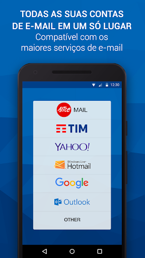 O aplicativo também permite entrar na maioria dos serviços de e-mail, todos juntos em um só lugar, seja TIM Mail & Alice.it, Hotmail, Outlook, MSN Mail, Gmail, Yahoo Mail, UOL, Globo ou qualquer conta compatível com POP/ IMAP/ SMTP.
