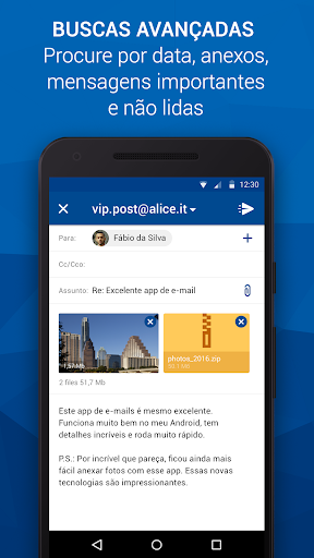 – Efetuar busca personalizada por data, destinatário, assunto, não lidas, marcadas ou com anexos para que você encontre seus e-mails num piscar de olhos.