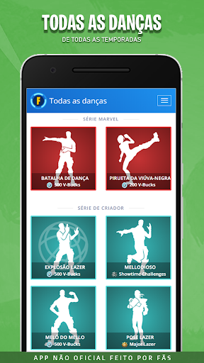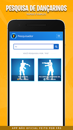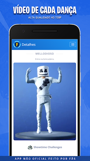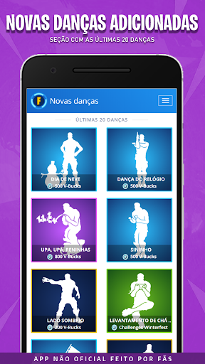 Você ainda está pensando em baixar nosso aplicativo? Pare de pensar e fazê-lo agora, se você realmente gosta deste jogo de vídeo, este aplicativo não pode perder em seu dispositivo. Nós já antecipamos que o Google Play não encontrará nenhum outro aplicativo que colete todas as danças e informações sobre cada uma das danças battle royale.