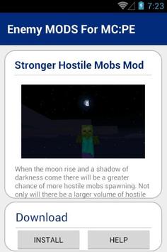 Enemy MODS For MC:PE When the moon rise and a shadow of darkness come there will be a greater chance of more hostile mobs spawning. Not only will there be a larger volume of hostile mobs, but they will also be much more dangerous as they will be able to have special buffs.
