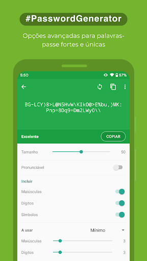✔️ Criação de palavras-passe fortes- Integra um gerador de palavras-passe para criação de palavras-passe únicas e fortes.