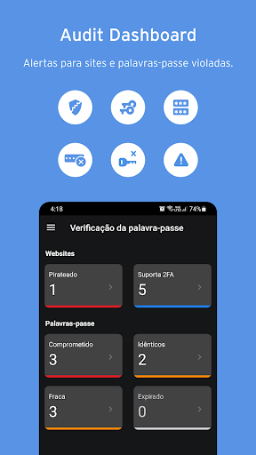 ✔️ Auditoria de palavras-passe- Monitoriza as suas palavras-passe fracas, antigas e pirateadas.