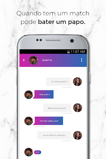 Nesse aplicativo de encontros, joga com pessoas reais e o chat abre assim que houver um “match” - ou seja, quando alguém lhe der a mesma opção que você lhe deu. É uma experiência social que pode ser jogada só por diversão ou com o objectivo de conhecer pessoas novas.