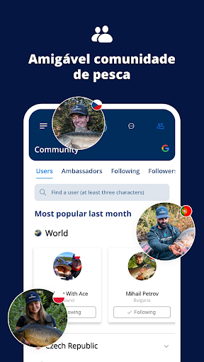 Pescadores de todo o mundo partilham os seus sucessos aqui. Para além das capturas, eles também exibem a beleza natural da natureza e a atmosfera tranquila que acompanha uma pescaria. Estás interessado em conteúdo específico? Podes filtrar contas, por exemplo tendo em conta o país dos pescadores. Podes facilmente encontrar os teus amigos usando os contactos Gmail. Para expandir os teus horizontes de pesca ainda mais, não te esqueças de seguir os nossos embaixadores e os top30 pescadores de cada país.
