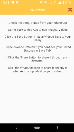 Poupança de status rápido é a poupança de status simples e rápida para você.Você pode facilmente salvar histórias de imagem e vídeo de seus amigos.