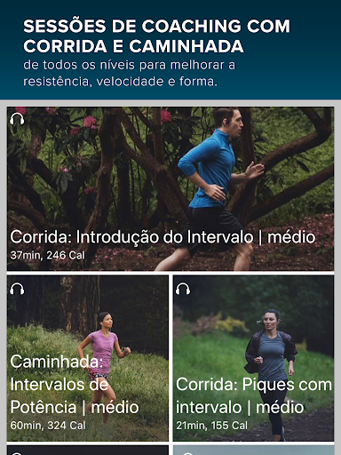 Corra atrás das suas metas fitness com treinos de peso corporal, corrida e caminhadas feitos só para você.