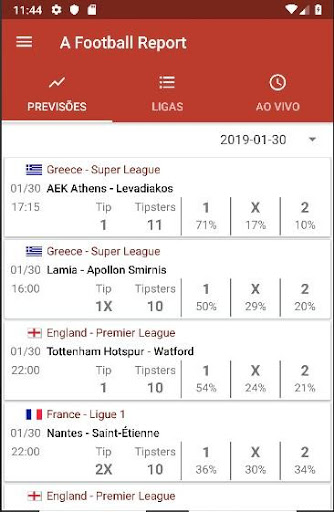 Previsões de futebol e estatísticas estendidas para jogos de futebol, ligas e taças atualizadas diariamente. Previsões em jogo e análise de jogos ao vivo. Previsões 1X2. Mais/Menos Gols. Primeiro Tempo Gols. Ambas as Equipas Marcarem. Cantos. Hándicaps. Vitórias/Perdas/Empates.
